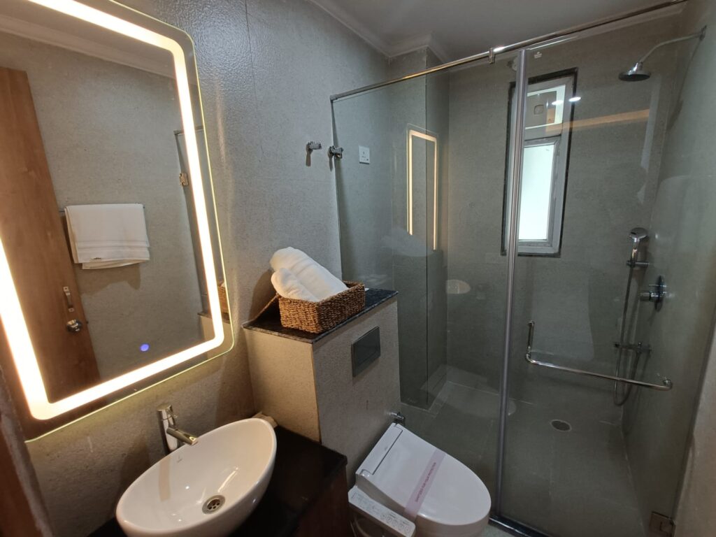 飲料水の支給(20Lのボトルを月4本)、ランドリーサービス(1日5点まで無料)、インターネット、電気代込み、24時間セキュリティガード
